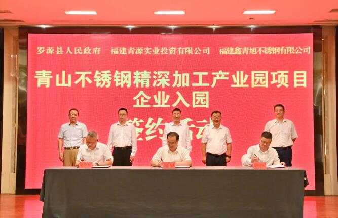 6月20日,青山不銹鋼精深加工產業園項目及企業入園集中簽約,開啟羅源不銹鋼產業發展嶄新篇章。信拓實業集團有限公司董事長張積敏、浙江青山鋼網電子商務有限公司董事長朱文達、福建青源實業投資有限公司董事長孫朝暉及11位簽約項目企業方代表;縣領導張新懌、蘭可明、陳登興、黃垂衛、張昆鵬、黃國安,福州臺商投資區領導吳志群等出席簽約儀式。