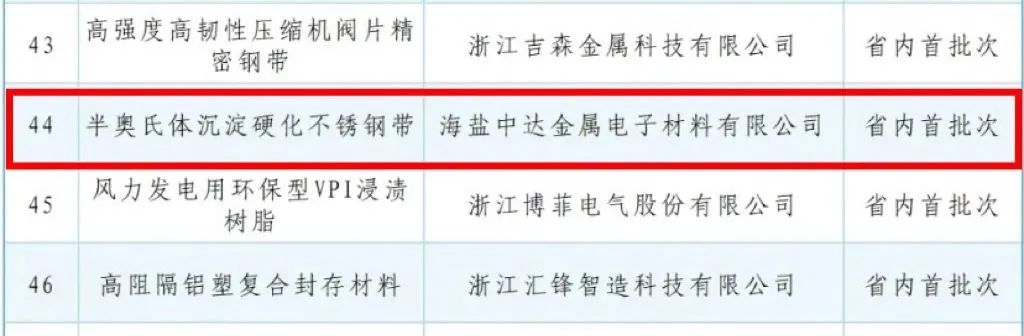 近日,浙江省經(jīng)信廳公布了2024年度全省首批次新材料認(rèn)定結(jié)果公示。百步經(jīng)濟(jì)開(kāi)發(fā)區(qū)海鹽中達(dá)金屬電子材料有限公司的半奧氏體沉淀硬化不銹鋼帶榜上有名。